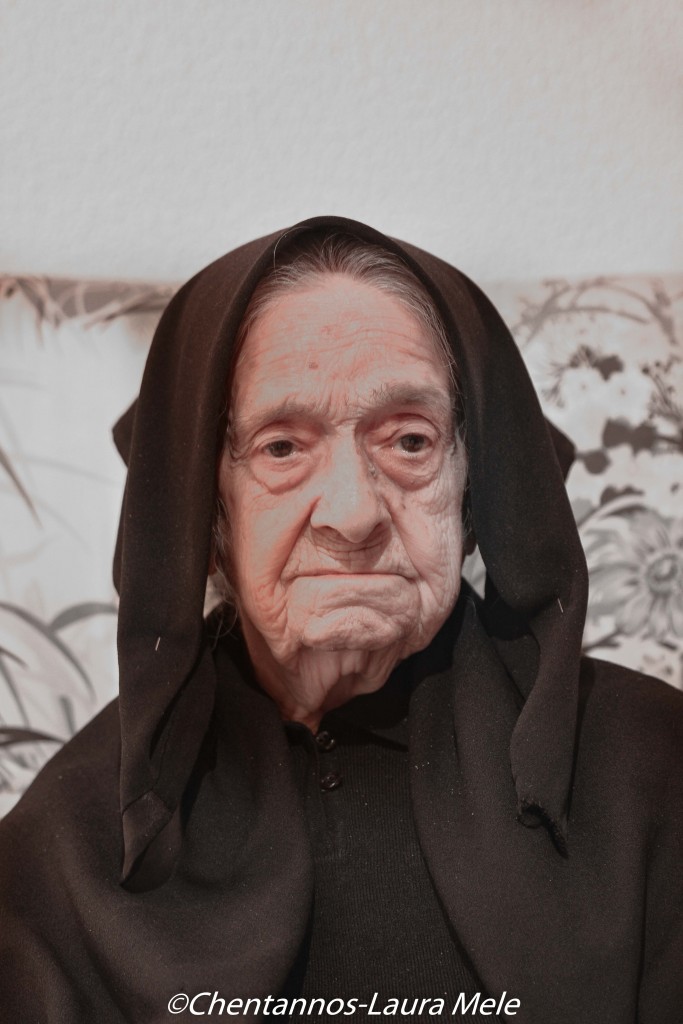 Ora durante il giorno mi tengo impegnata facendo il rosario , non vedo bene e le altre cose più impegnative non riesco a farle . Prima invece facevo tutto, ricamavo ,” arrecravammos li navammos”, ed io infatti ricamavo il costume sardo ed il mio vestito di tutti i giorni .Quando ero più giovane il mio vestito buono non era così era “ sa veste e brathalla li navammos “.